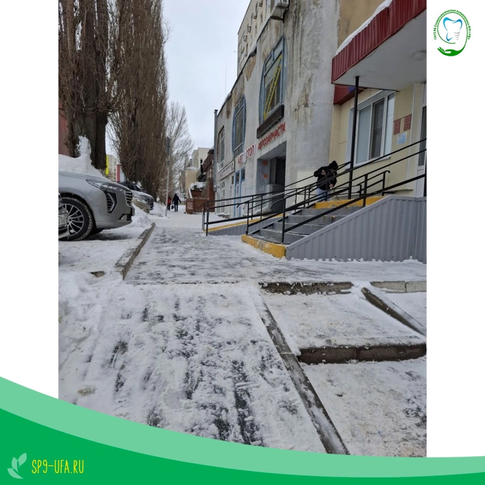 Коллектив Стоматологической поликлиники №9 регулярно проводит очистку крыш и козырьков от снега и сосулек, очистку ступенек и тротуара от наледи. Мы делаем всё возможное, чтобы территория нашего учреждения была безопасной для пациентов и посетителей.
