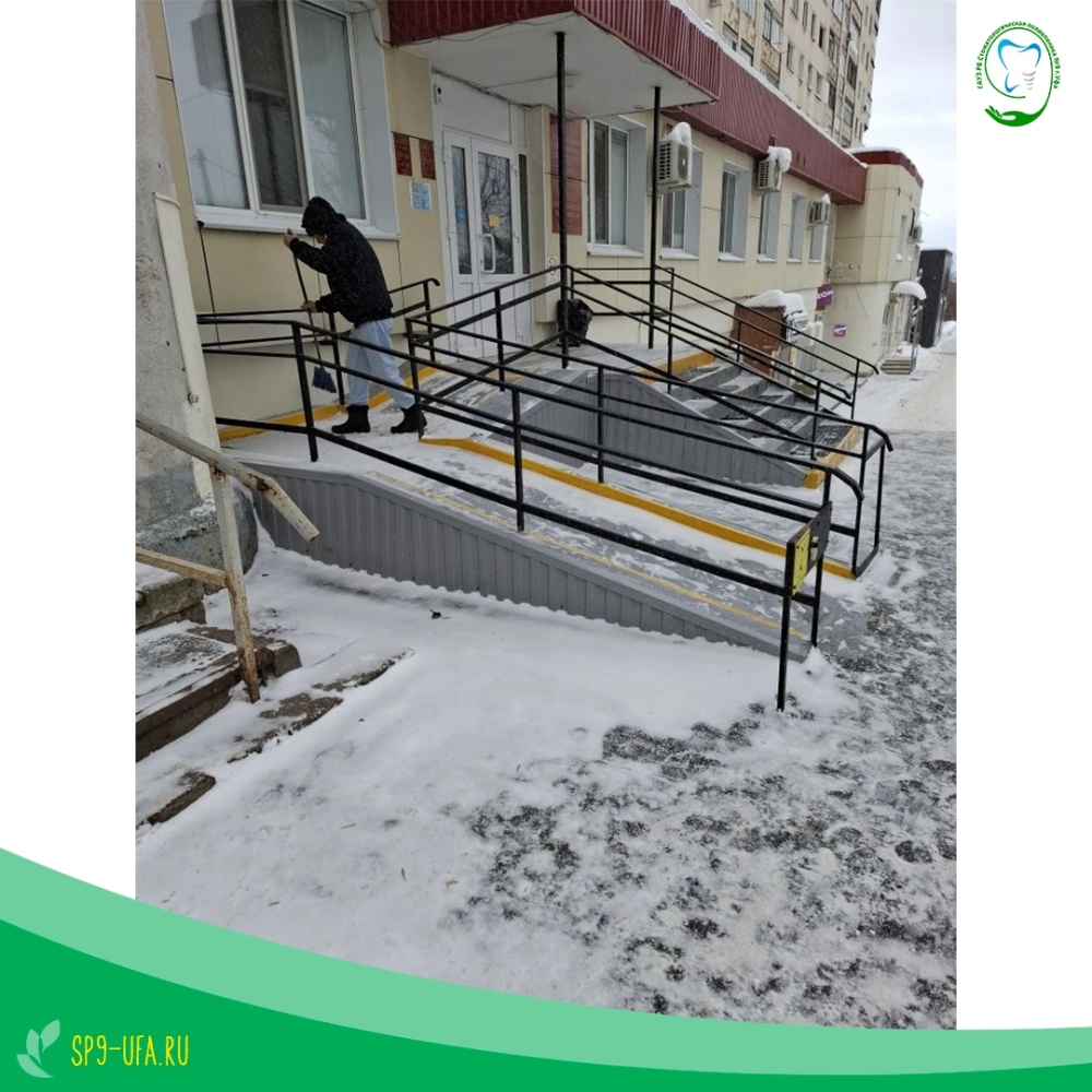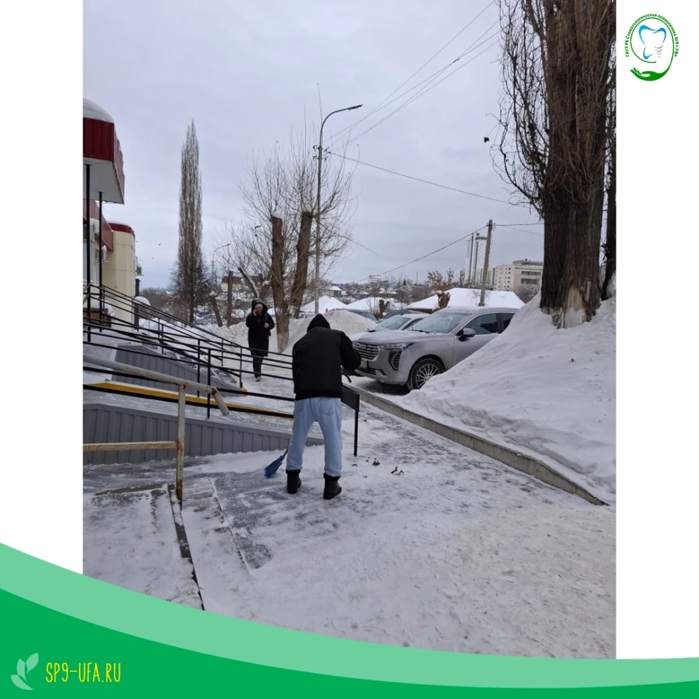 Коллектив Стоматологической поликлиники №9 регулярно проводит очистку крыш и козырьков от снега и сосулек, очистку ступенек и тротуара от наледи. Мы делаем всё возможное, чтобы территория нашего учреждения была безопасной для пациентов и посетителей.